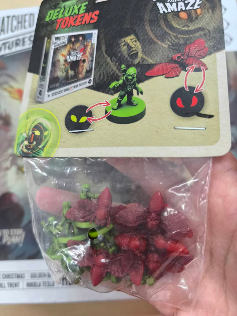 In the game, players work together to defeat one of two villains: Mothman or the Martian Invader. Each villain has a unique battlefield with unique objectives. If the villain completes their objective (or defeats the heroes), the players lose. The villains are aided by a number of possible minions: Jersey Devil, Ant Queen, Loveland Frog, The Blob, Tarantula, and Skunk Ape. The enemies use special action cards and a simple targeting scheme to control their movement and attacks.