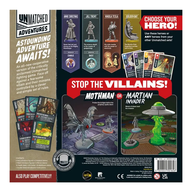 Keeping to the Unmatched brand, you may use heroes from other Unmatched sets in Unmatched Adventures, and you can use the included heroes and battlefields to play competitive Unmatched.