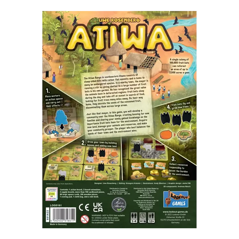 In the game, you will develop a small community near the Atiwa Range, creating housing for new families and sharing your newly gained knowledge on the negative effects of mining and the importance that the fruit bats have for the environment. You must acquire new land, manage your animals and resources, and make your community prosper. The player who best balances the needs of their community and the environment wins.