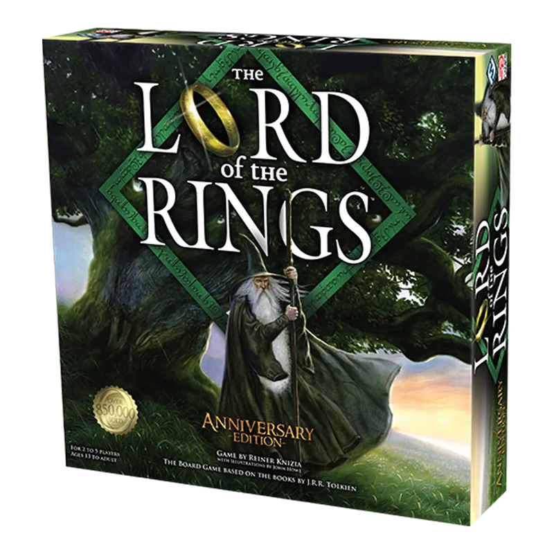 A special edition limited to 500 copies in the English language and 250 in German published by Sophisticated Games and Kosmos in November 2001. The Limited Edition has a silver 22 carat gold plated ring, pewter Hobbit playing pieces, and a signed and numbered John Howe print. Box signed by Reiner Knizia.