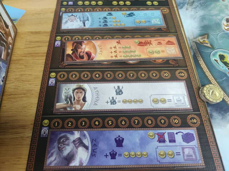 - เทพซุส ได้การ์ดนักบวส (ใช้ลดค่าประมูล) สร้างวิหาร
