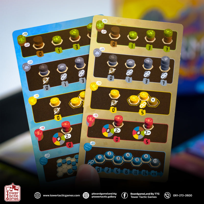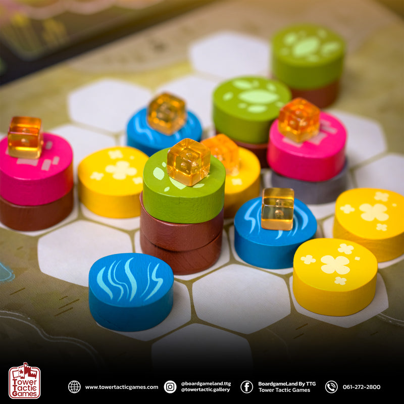 4. เกมจะจบเมื่อในถุงผ้าไม่มีโทเคนเหลือ หรือมีผู้เล่นอย่างน้อย 1 คน ที่เหลือช่องว่างบนกระดานเพียง 2 ช่อง จะเล่นต่อถึงคนสุดท้าย และจบเกม ผู้ที่มีคะแนนมากที่สุด ก็จะเป็น ‘ผู้สร้างโลกที่สมดุลอย่างสมบูรณ์แบบ’