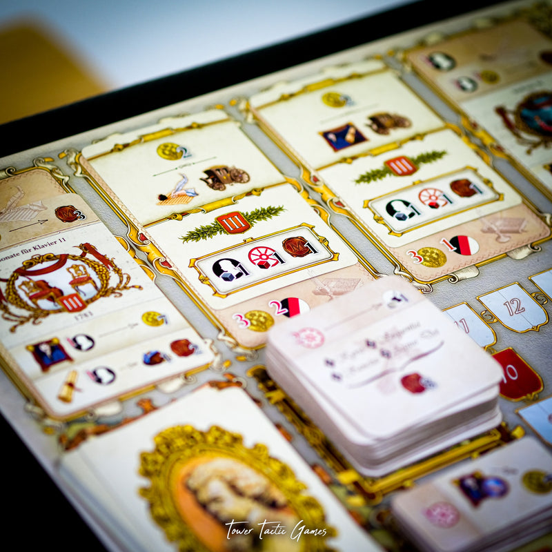 โดยเกมนี้ ผู้เล่นจะรับบทเป็นผู้อุปถัมภ์ที่มาสานต่อผลงานชิ้นสุดท้ายของโมสาร์ท โดยการเล่นจะแบ่งเป็น 5 รอบ แต่ละรอบผู้เล่นจะต้องเลือกการ์ดในมือเพื่อทำแอคชั่นต่าง ๆ อาทิ จ้างนักประพันธ์ จัดแสดงผลงาน ออกเดินทางไปยังสถานที่ต่างๆ ตลอดจนสานต่อเรเควี่ยม ซึ่งสิ่งต่างๆเหล่านี้จะถูกนำมาคิดเป็นคะแนน เมื่อสิ้นสุดรอบสุดท้าย ผู้เล่นที่มีคะแนนมากที่สุดจะเป็นผู้ชนะ