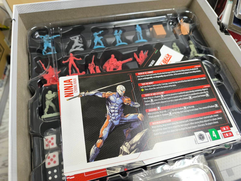 ใน METAL GEAR SOLID: The Board Game ผู้เล่นจะได้สวมบทบาทเป็นตัวละครหลักจากวิดีโอเกม เช่น Solid Snake, Meryl Silverburgh, Grey Fox และ Hal "Otacon" Emmerich โดยผู้เล่นจะต้องร่วมมือกันทําภารกิจให้สําเร็จ และเอาชนะศัตรูตัวฉกาจให้ได้!